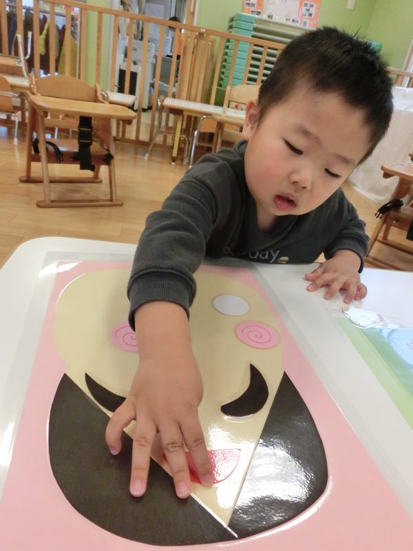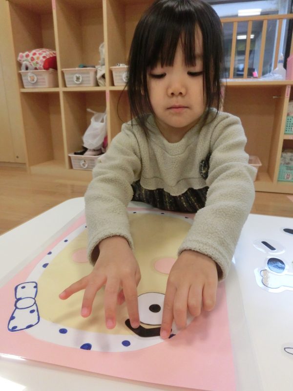 自分で顔のパーツを置くのが楽しい様子でした![]()