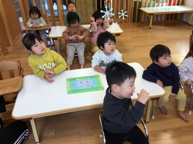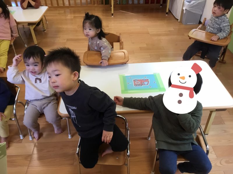 聞かせてくださり完成したものを見て「ゆきだるまできたー?」と、