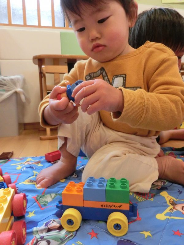 雪で遊んだ後はお部屋で手作り玩具や好きな玩具で遊んだよ![]()