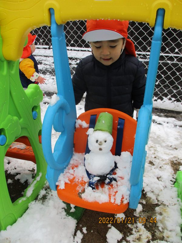 雪だるまをブランコに乗せてあげた?ぐみさん![]()
