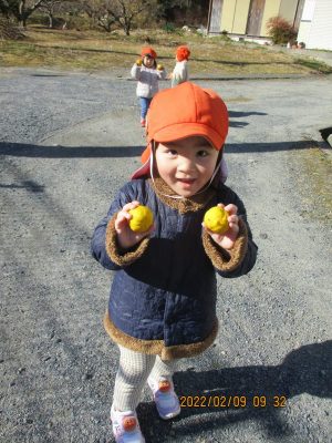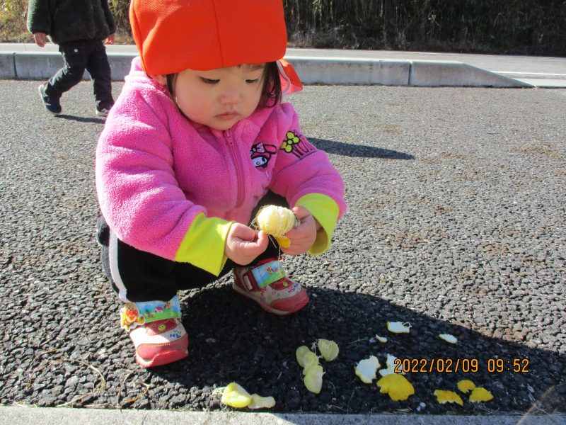 ?ぐみさんは保育者に柚子の皮を剥いてもらうと