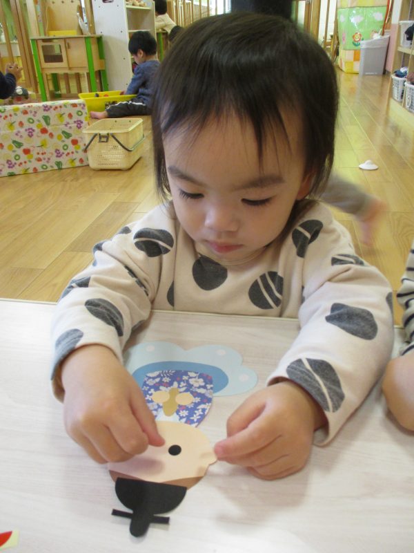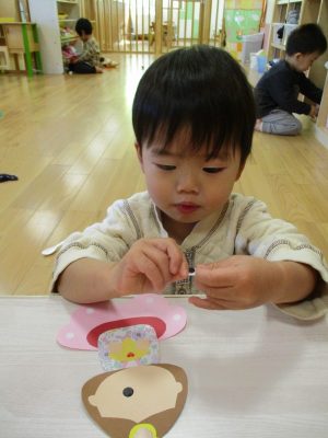 台紙からシールを剝がせたら顔にパーツを貼っていきます![]()