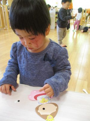 顔のパーツはタックシールを使って目や口を貼りました![]()