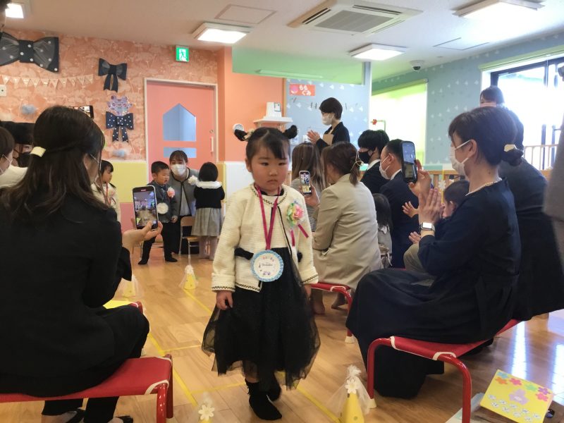 まずは園長先生からお祝いの言葉をもらい次は卒園証書をもらいにいきます✨