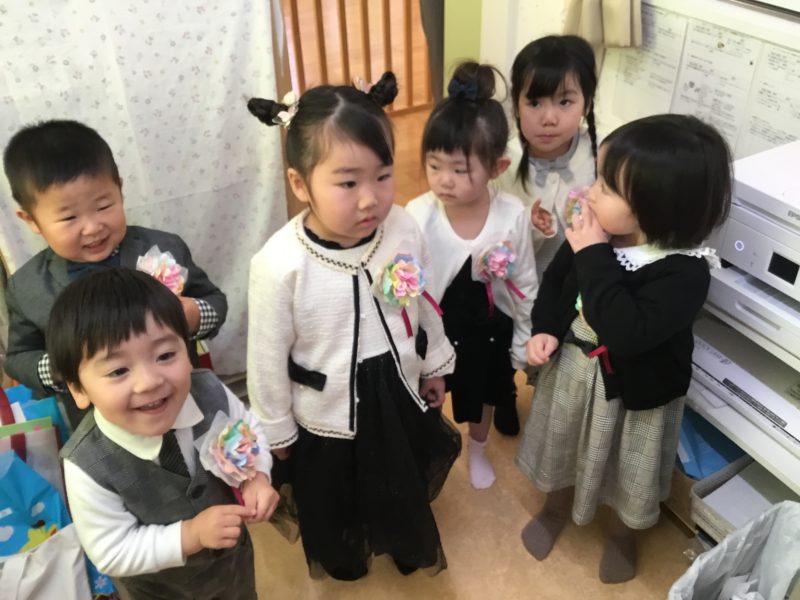 いつもとは違った服装でちょっぴり照れたり緊張したりしながら登園してきてくれました?