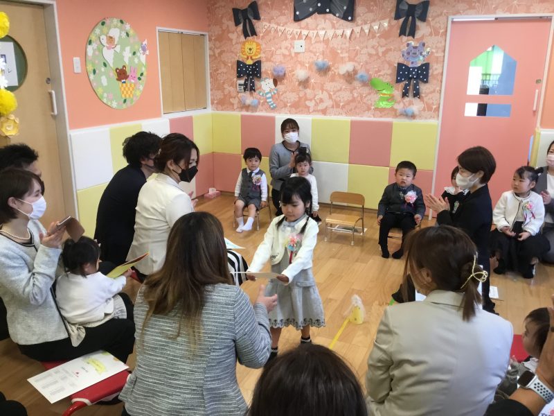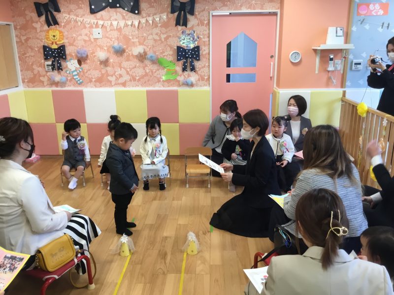 卒園証書を受け取った後はみんなで「ちょうちょとチューリップ」のお歌をうたいます?