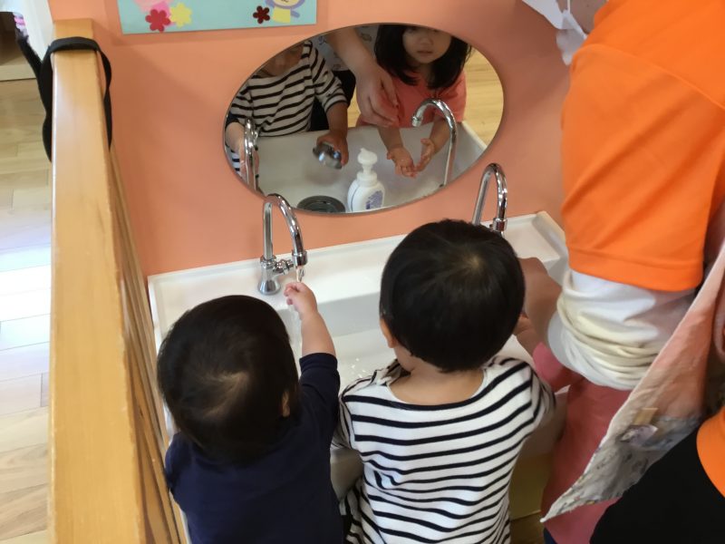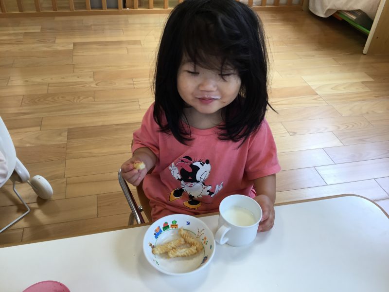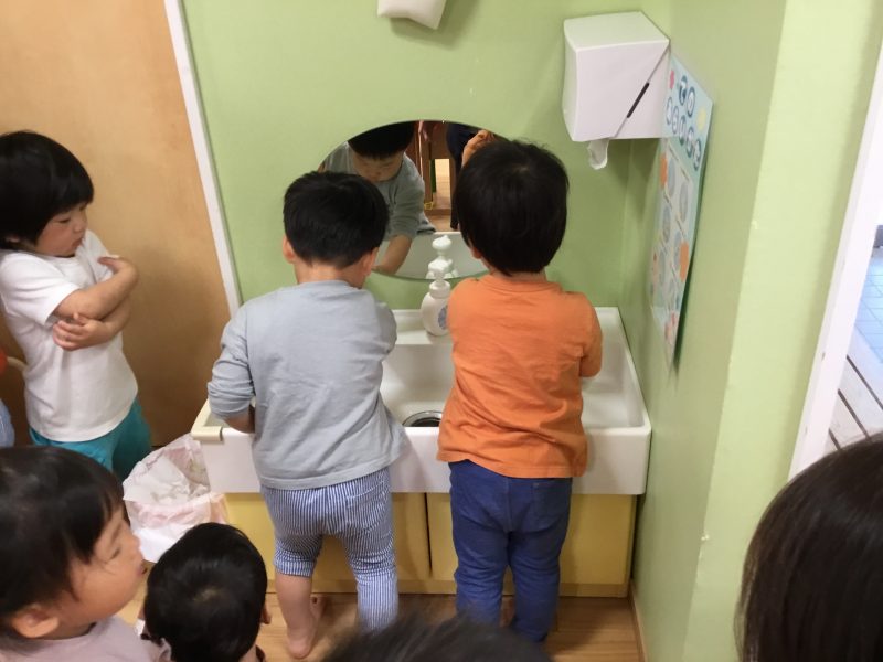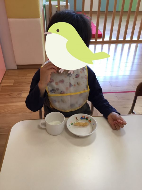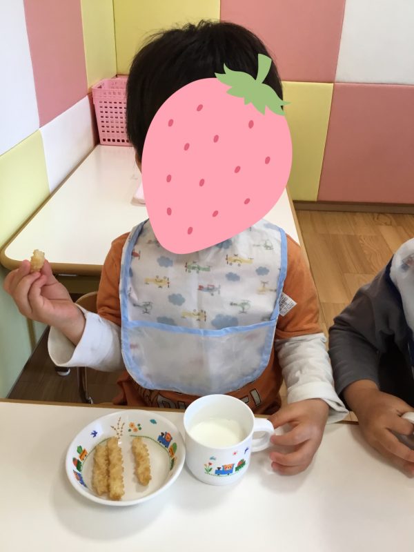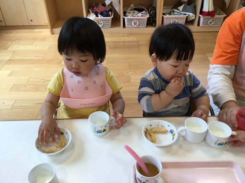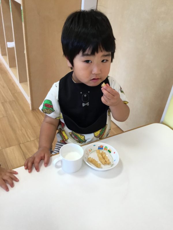 手を洗い終わるとみんなが楽しみにしているおやつタイムです?