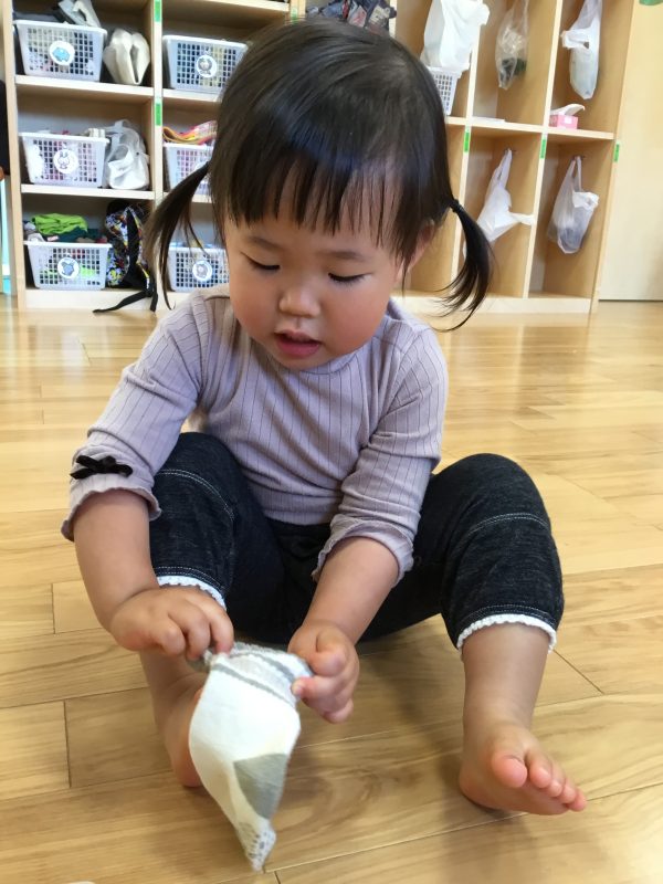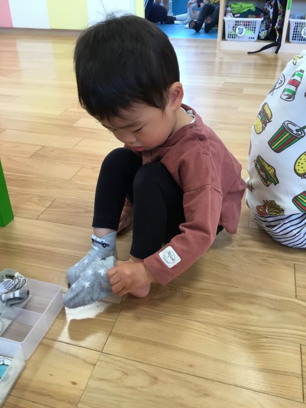 りんご組さんは頑張って靴下を自分で履こうとしてくれていますよー✨