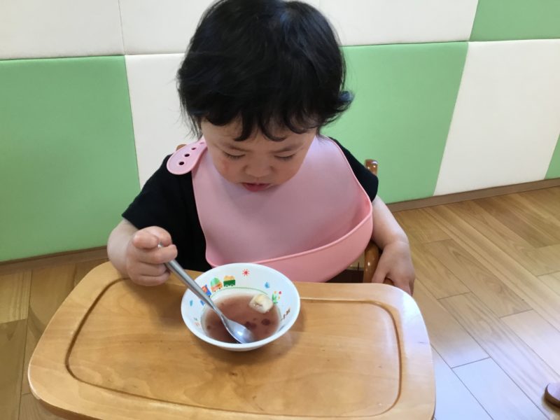 園では少しずつ身の回りのことを自分でと頑張ってくれているりんご組さん?