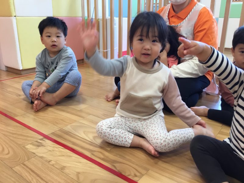りんご組さんは「ハイッ」と言いながら手を上げて