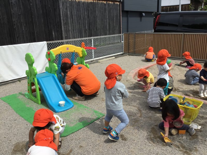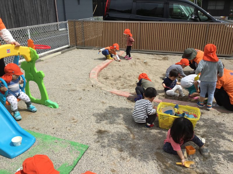 いちご組さん?は砂遊び・りんご組さんは砂遊び虫探しが大好きです?
