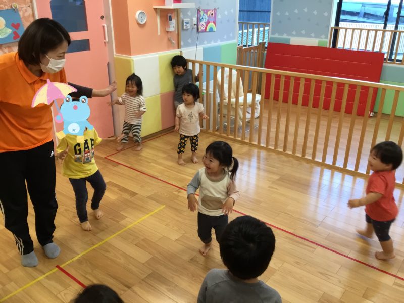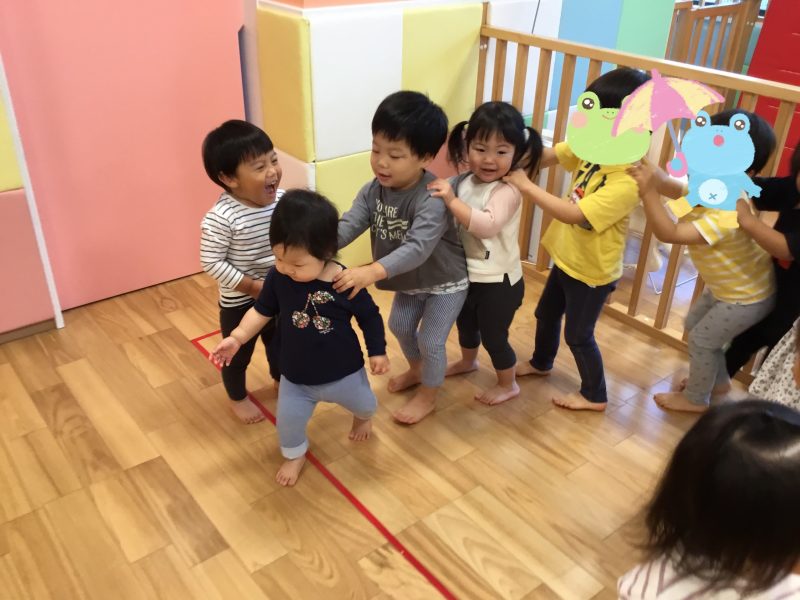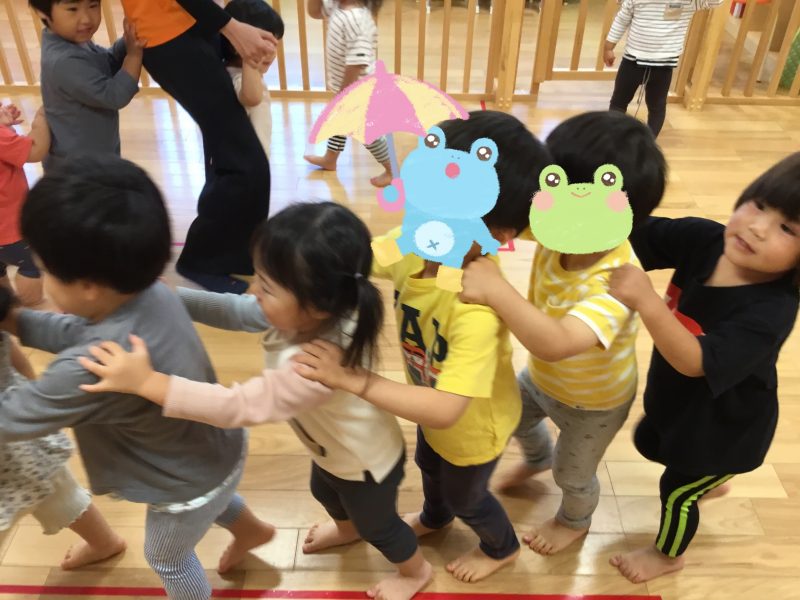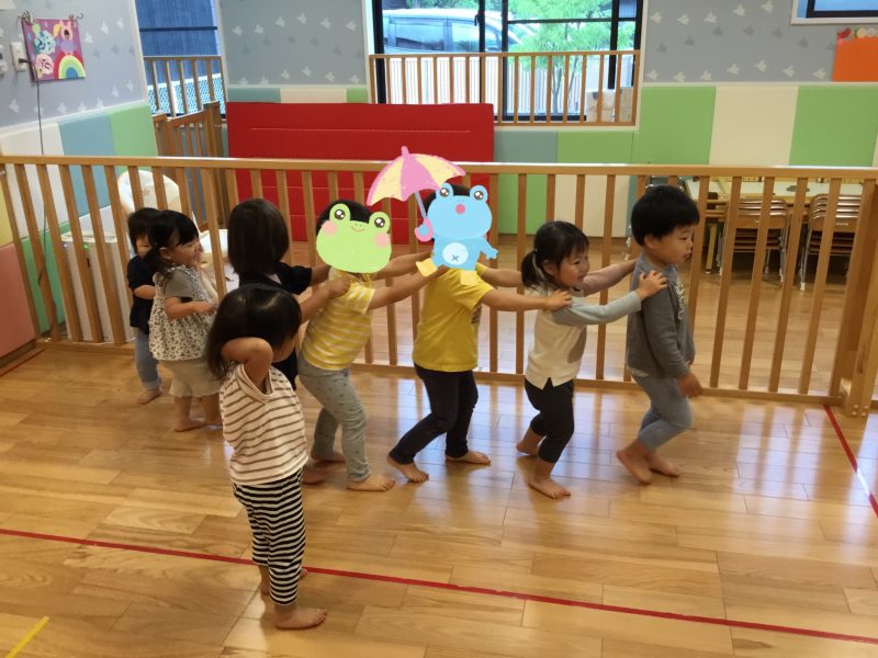 次は「かえるのうた」に合わせてかえるさんに変身?✨