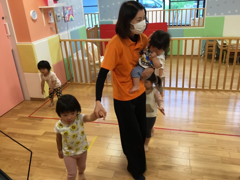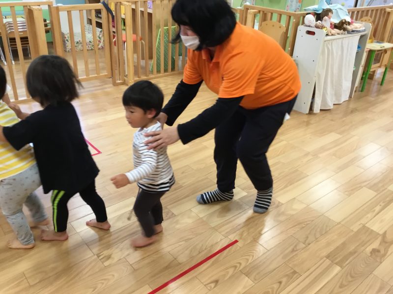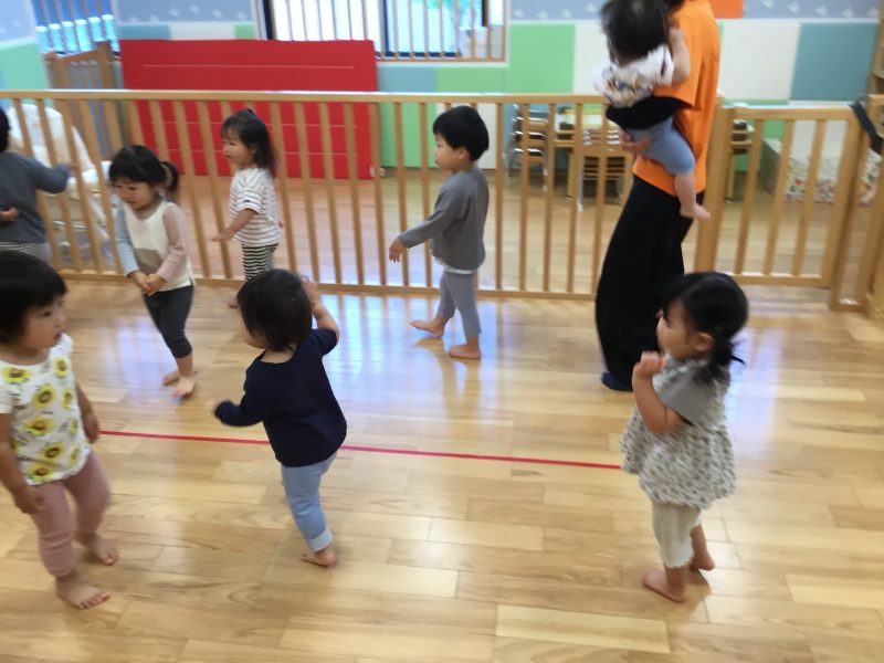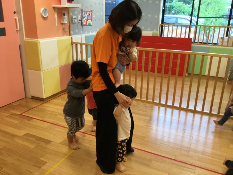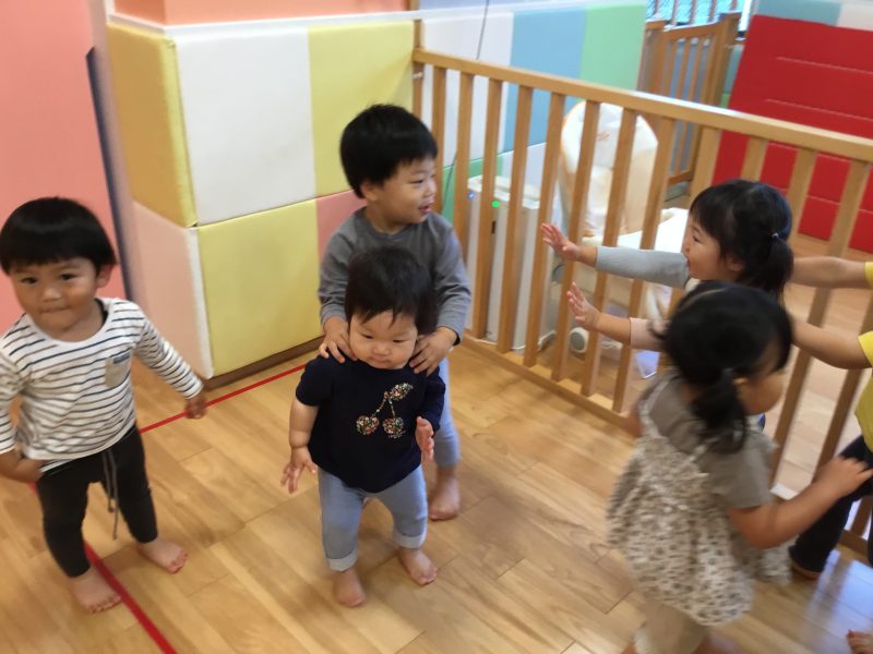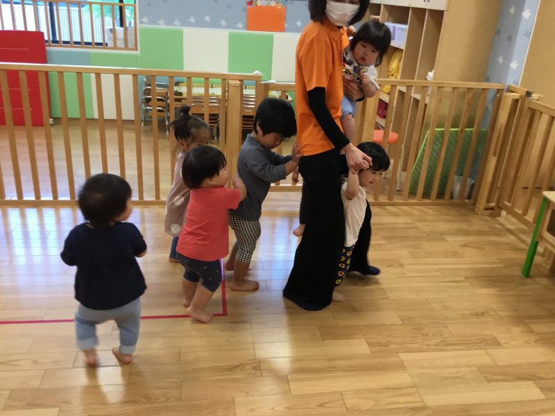 今では「線路は続くよどこまでも」の曲が流れてくると友だちとくっつき長い列車を作ってくれています??