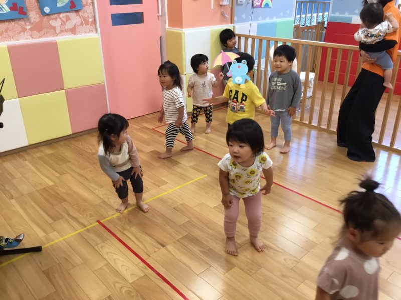 リトミックではリズムに合わせて手を叩いたり?、音に合わせて体で表現したり、季節の歌を歌ったり?しながら楽しく表現遊びをしています??