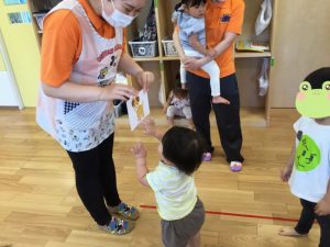絵本の後は動物のカードをみたりあいさつのカードをみたのですが