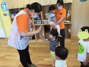りんご組さんのお友だちがタッチをしに来てくれると、それをみていたお友だちは✨✨