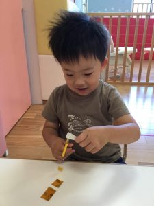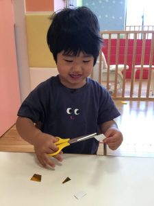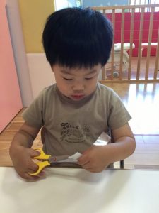 ハサミの持ち方や気をつけることなどのお約束をしっかりと聞きながら慎重に切ってくれましたよ✂️