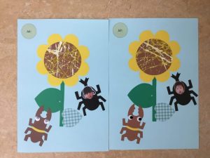 この模様をつけた丸の画用紙は夏のお空に向かってグングン大きくなるひまわりになりました?