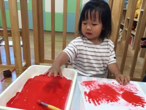 フィンガーペインティングは自分の手や指に絵の具をつけて自由に描く遊びにことです✨