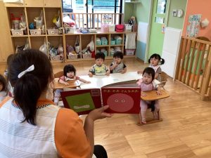 この絵本や「だるまさんの」の、絵本を通して、目や鼻、口の場所を覚えてきてくださっていますよ?