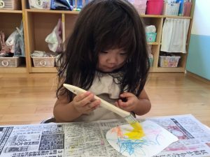 クレパスで模様をつけたら今度は上から絵の具を塗ってはじき絵を楽しみます