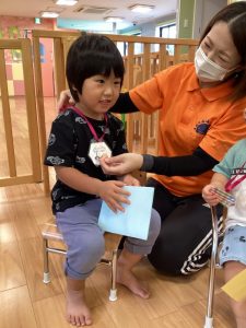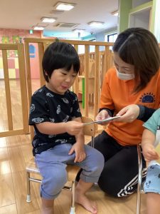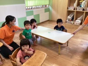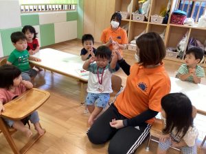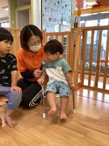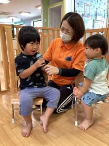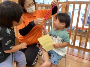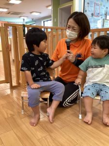 いちご組さんのお友だちにはお名前を呼びましたよ