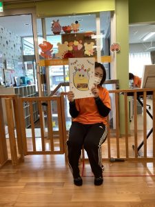 お名前の後に好きな食べ物や好きな恐竜を聞くと照れながらも答えてくれました