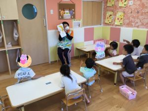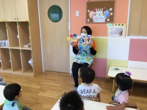 今週の絵本ブログはりんご組さんが「いろいろばぁ」の絵本を見ている様子をお伝えします🎨