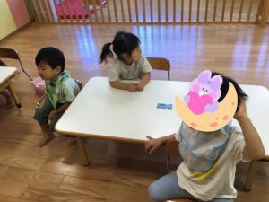 「どんな色が好き」のペープサートが始まると✨