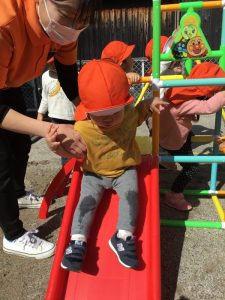 保育園では、お外で元気いっぱい遊んだりお絵描きをしたりと、衣服が汚れたりしてしまうことが多いので動きやすい服、汚れてもいい服での登園をお願い致します😊