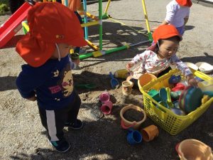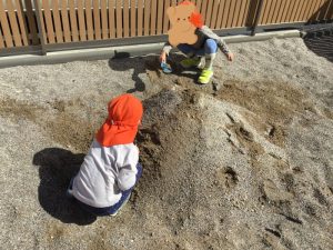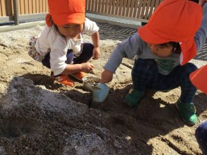 さて、砂場ではなにをして遊んでいるのかな👦🧒