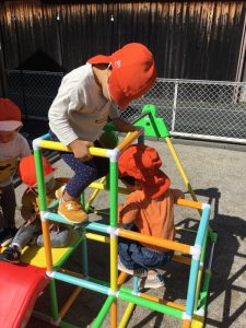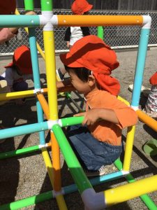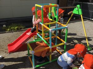 園庭には新しいジャングルジムが登場👏