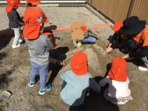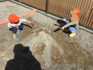 お友だちと一緒に仲良くお山作り🗻