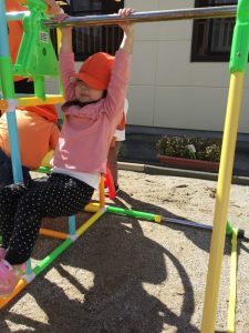 園庭に出ると真っ先にジャングルジムにレッツゴー🏃♀️💨