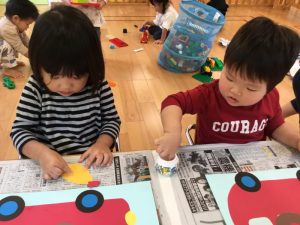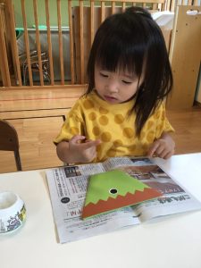 製作の説明をみんなで聞いたりする事も出てきましたが、保育者の顔をみてしっかりと聞いてくださっています☺️
