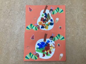 あおむしさんが食べる果物に色をぬりぬり🐛✨
