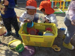 「どれを使おうかなー?」と玩具入れをゴソゴソ☺️