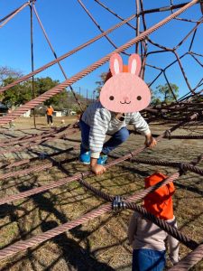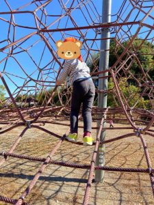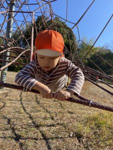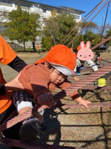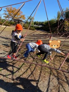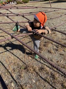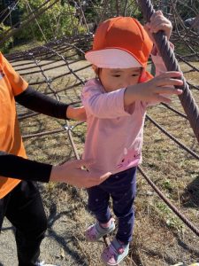 りんご組さんは、保育者が驚くぐらいスイスイと登って気がつくとタワーの真ん中まで✨