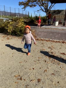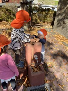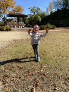 落ち葉を触ると、色々な音がなって楽しいね🥰🍁