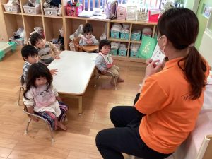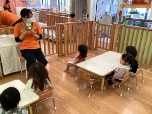 「クリスマスにかくれんぼ」の絵本を見ている様子をお伝えします🎅