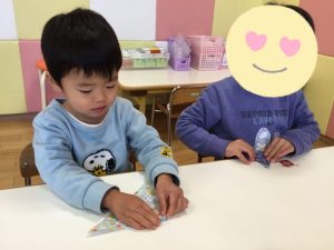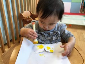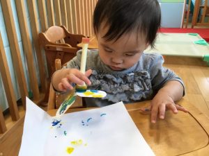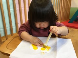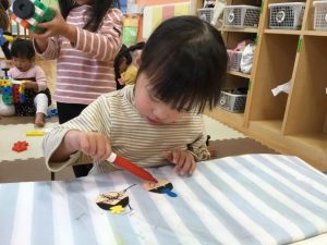 4月には、初めての手形に涙が出ているお友だちもたくさんおられましたが、今では「ペッタンするー😆」と喜んでしてくださったり、指先を上手に使ってのりを塗ったり、シールを貼ったりできるようになりました😉