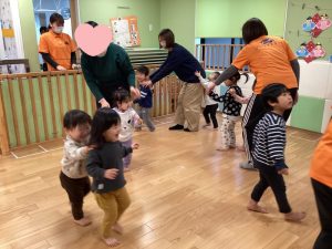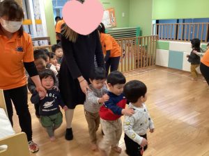 リトミックで一緒に電車ごっこを楽しんだり✨