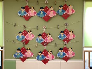 各クラスには手作りのひな人形が飾られ、お部屋が一気に春を感じるようになりました🌸