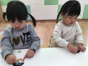 初めは物を持って描くことが難しかったもも組さんも、この1年でなぐりがきができるようになったり大きなシールが貼れるようになったりとたくさんの成長を見せてくれました👏