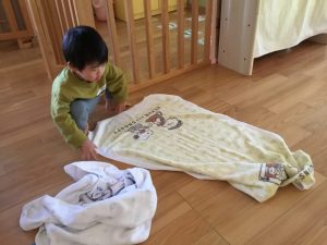 お昼寝起きのシーツも自分たちで畳んでくださっていますよ☺️
