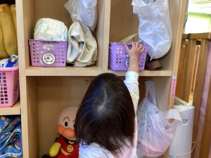 オムツやパンツ、服などその日に必要なものを出します😊✨
