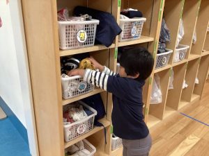 保育者の声かけを聞いて、自分のロッカーにオムツを取りに行ったり✨