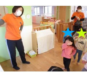 👩『先ずはじめは忍者体操だよ~』