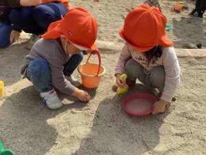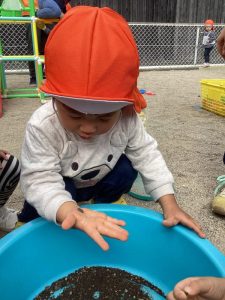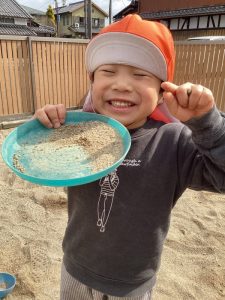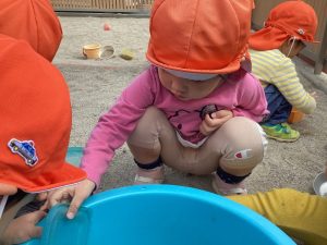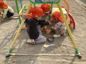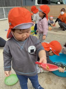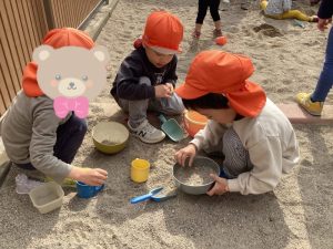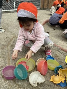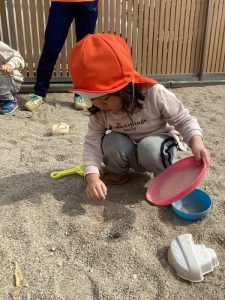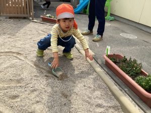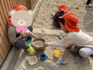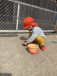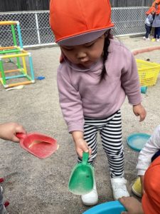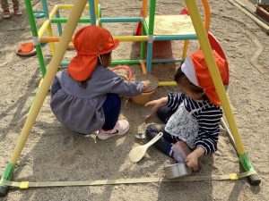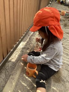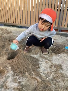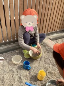 園庭ではサラ粉づくりがブームのりんご組さん🍎