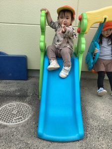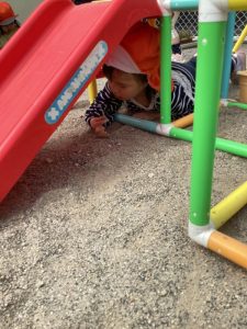 「ちょっと待ってね✨」と滑り台の後ろへ言ってくれたお友だち🍀